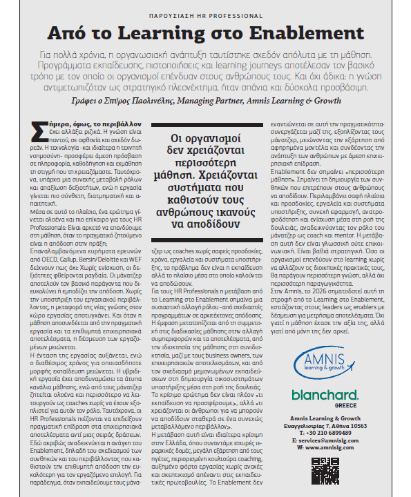• Άρθρο του Σπύρου Παολινέλη στο τεύχος Φεβρουαρίου 2026 στο HR Professional